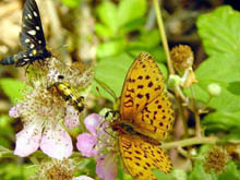 gentian, iris and orchids and wild roses grow at the edge of wood lands.