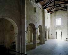 The Church of St Peter differs from the other one, St Mary of Portonovo, because of its form. Its beauty, however, even if retouched more than once, preserves its form of roman basilica with three naves, originally covered with round arches and groin vaults. The rectangular form and the walls are in limestone. Inside, 14 columns and marble and stone capitals, with differential designs, represent the real structural and artistic beauty of the sacral construction with decorative elements: leaves of acanthus, pine seeds, flowers and animals.