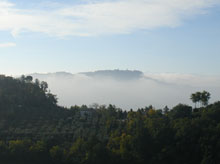 The Adriatic Sea can be glimpsed among the sun-flowers fields and olive groves between the villages of Massignano and Montefiore dell’Aso perched on two hills dominating the area. Both villages are typical Medieval hamlets with their bell towers rising over the roofs of the old houses around them.