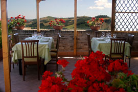 The inn looks out onto the castle walls of Ortezzano, a small centre with a medieval past in the heart of the Piceno area, the territory with the original name of its first dwellers of historical epoch. Therefore the name “I Piceni” was not chosen by chance, neither was the choice of the symbolic decoration shown inside and outside the inn. With the idea of evoking the epics of the ancient Italian population, bellicose but at the same time convivial. A stay in this place, which is isolated yet rich in suggestions of settlements from time to satisfy the expectations of even the most demanding guest. From here you can enjoy the ideal calm of an agricultural landscape that is characterised by crops arranged like renaissance gardens, from the visions of turreted fortresses and villages surrounded by battlemented walls that dominate the scene from the top of the hills.Looking to east following the course of the river Aso you can see the blue of the sea: a cut in the “immense spaces” of a Leopardi style memory. We are at the gates of the National Park of the Sibillini Mountains. Turning your eyes to the west you enjoy the view of the high peaks of the anthropomorphic profile, legendary dwelling of wizards, fairies and fascinating sibyls and therefore a destination with no return for fearless errant knights. Last but not least in importance. The palate can taste the delicacies of our cuisine that brings to the table the colours, tastes and scents of the country, hills and sea.