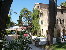 The gate of the Villa leads to a beautiful garden in perfect Italian Style. It is well kept and shadowed by century old pine trees. The mightiness of the structure is what strikes most. The facade is in fact half covered in ivy. The stillness seems to trespass the centuries and reminds of the far gone times when the Benedictine monks came here and build the abbey. They would pass their days praying and working to reclaim lands from the marshes for agriculture.