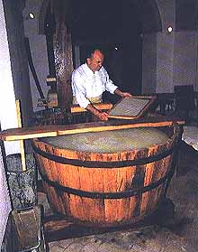fabbricazione della carta a mano da parte di artigiani che ripetono gli